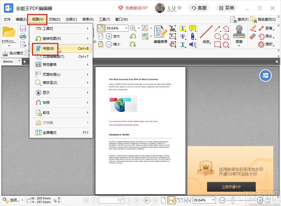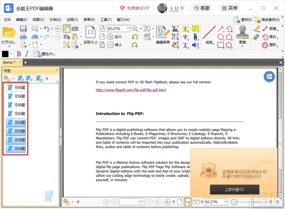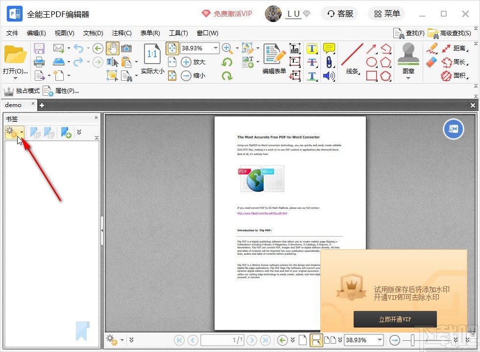 全能王PDF编辑器这款应用相信有很多用户都是非常熟悉的,在操作这款软件的时候可以对电脑中的PDF文件进行各种编辑操作,包括对PDF文件中的注释、书签等参数进行导入和导出,在我们查看一些页数较多的PDF文件时就需要书签来进行辅助标注,这样可以快速定位到PDF文件的某个部分,鉴于还有一些用户不知道要怎么在全能王PDF编辑器这款软件中导出书签,那么小编就来跟大家分享一下具体的导出书签操作方法吧,感兴趣的朋友不妨一起来看看这篇教程,希望这篇教程能够帮到大家。