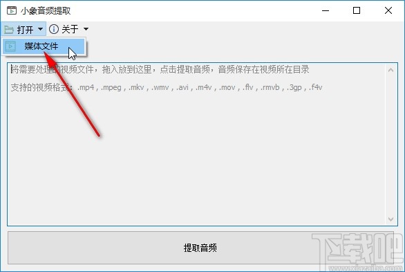 1.首先第一步我们打开软件之后,在软件的左上角找到打开这个按钮,然后在出现的界面中选择媒体文件选项,准备打开媒体文件。