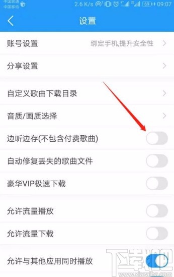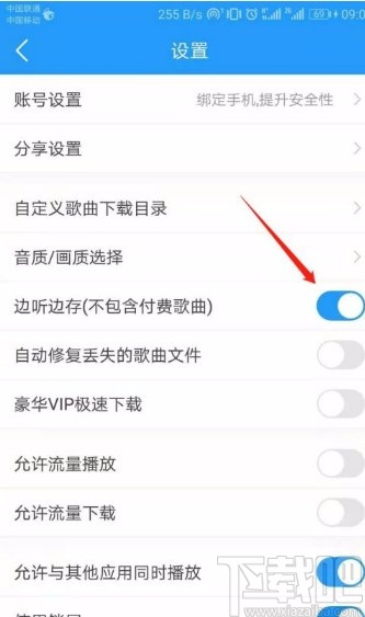 4.接下来在设置页面中,我们在页面上找到“边听边存”选项,该选项后面有一个开关按钮,如下图所示。