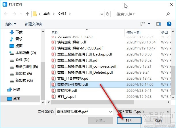2.点击这个打开按钮之后,下一步在出现的界面中,我们选中目标PDF文件之后,点击右下角的这个打开按钮即可。