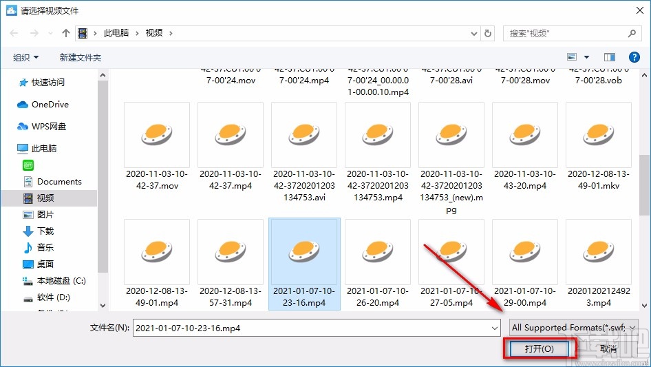 3.在文件添加页面中,我们将需要调整对比度的视频选中,再点击页面右下角的“打开”按钮就可以了。