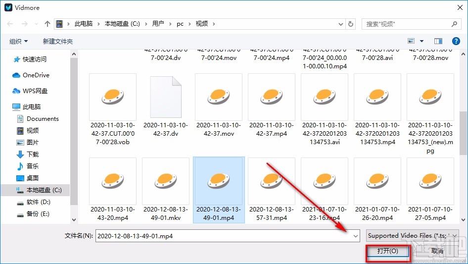 4.在文件添加页面中,我们将需要压缩的视频选中,再点击页面右下角的“打开”按钮就可以了。