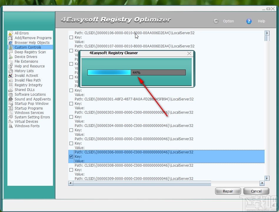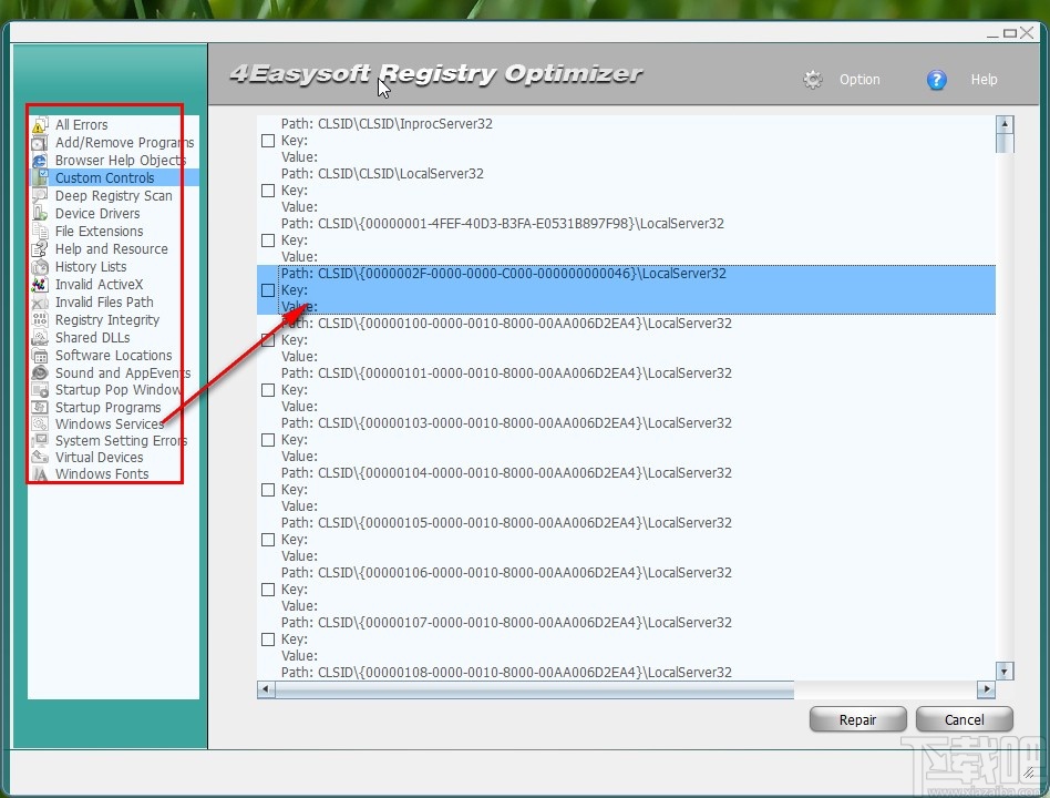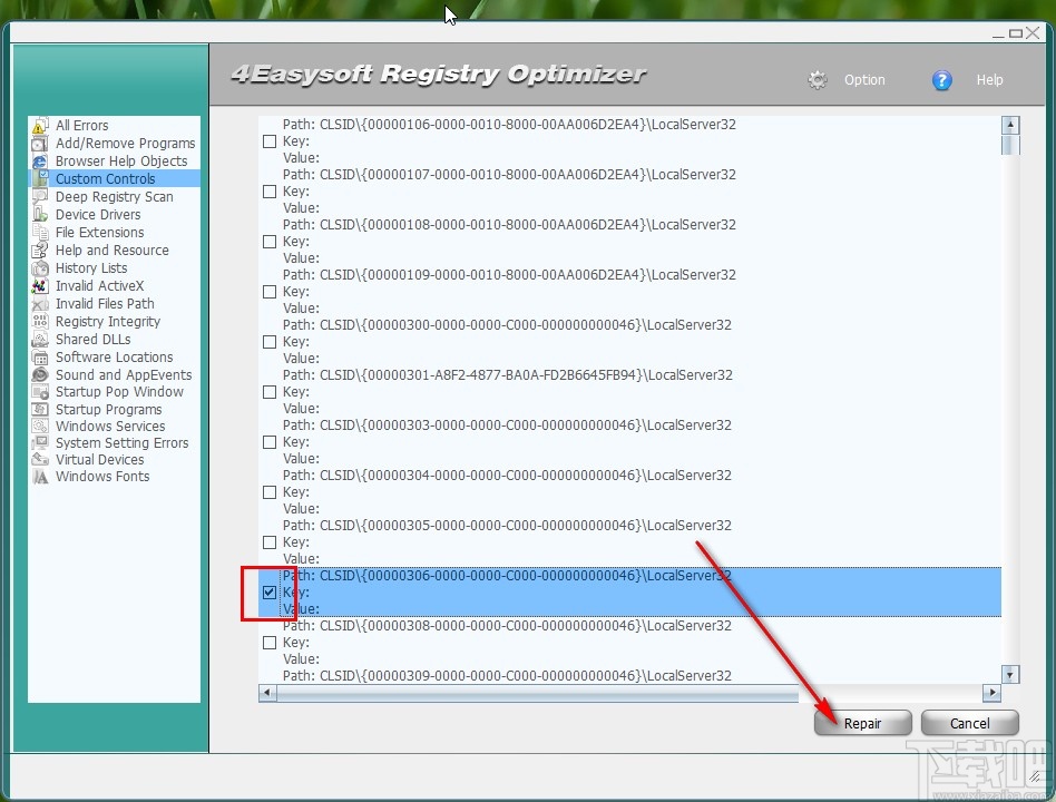 4.我们查看这些注册表信息之后,点击勾选其中想要删除修复的选项,勾选之后点击右下角的Repair这个按钮即可开始修复删除注册表数据。