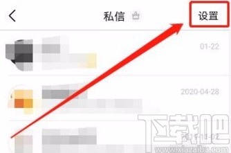 4.接下来在私信页面中,我们在页面右上角找到“设置”选项,点击该选项就可以进入到私信设置页面。