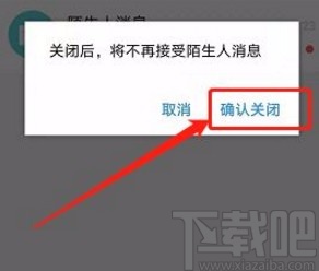 6.最后界面上就会出现一个提示窗口,我们直接点击窗口中的“确认关闭”按钮,就不会再接收陌生人的消息了。