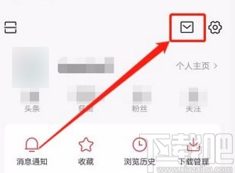 3.接着在我的页面中,我们在页面右上角找到信件形状的私信图标,点击该图标就可以进入私信页面。