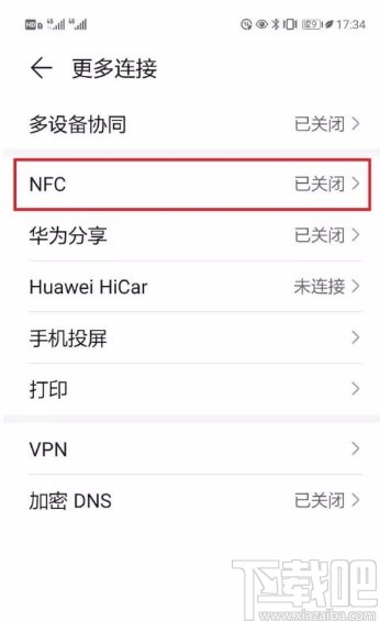 3.接着在更多连接页面中,我们在页面上找到“NFC”选项,点击该选项就可以进入到NFC页面。