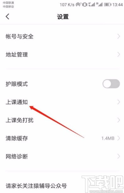 4.接下来在设置页面中,我们在页面上找到“上课通知”选项,点击该选项就可以跳转到上课通知页面。