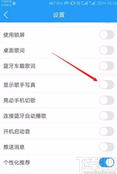 4.接下来在设置页面中,我们在页面上找到“显示歌手写真”选项,该选项后面有一个开关按钮。