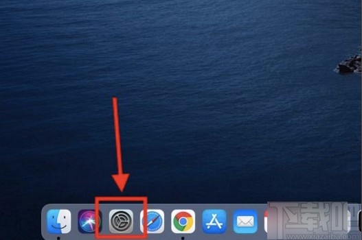 1.首先打开电脑,我们在电脑桌面的底部找到齿轮状的系统偏好设置按钮,点击该按钮即可进行下一步操作。