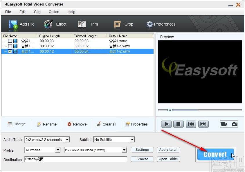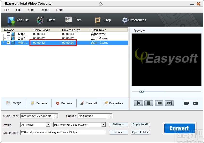 7.确认好剪切的时间长短之后,只勾选这个剪切了的视频文件,然后点击右下角的Convert转换按钮就可以将剪切之后的视频转换保存下来了。