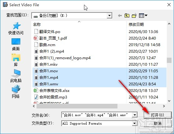 2.点击添加文件之后,接下来下一步会出现一个选择文件的界面,在这个界面中我们可以选择自己想要操作的视频文件,选中之后点击右下角的打开按钮。