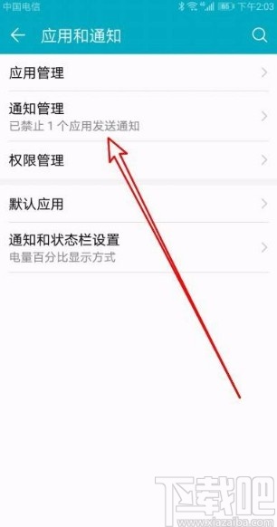3.接着在应用和通知页面中,我们在页面上方找到“通知管理”选项,点击该选项就可以进入到通知和状态栏设置页面。