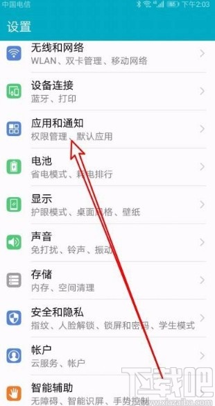 2.进入到设置页面后,我们在页面上找到“应用和通知”选项,点击该选项就可以进入到应用和通知页面。