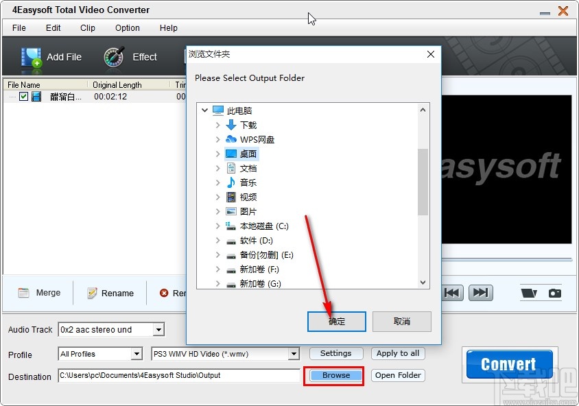 6.保存好视频亮度的设置之后,在界面下方点击Browse这个浏览按钮,点击这个浏览按钮之后在出现的菜单界面中,我们选择想要设置的输出目录,选择之后点击确定按钮。