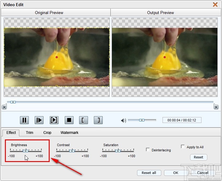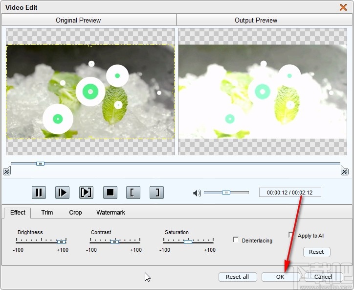 5.根据自己的需求调整好亮度之后,在界面的右边可以看到视频亮度调整之后的效果,点击下方的OK按钮确认这个效果的调整即可。