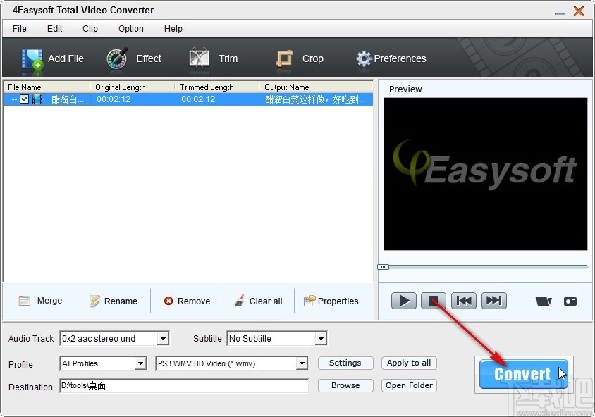 7.设置好视频的输出保存位置之后,在软件界面点击右下角的Convert这个转换按钮就可以开始将调整亮度的视频转换保存下来了。