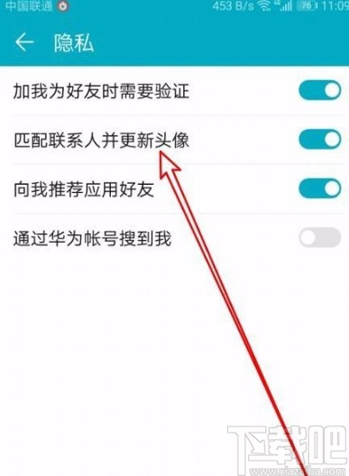 5.最后在隐私页面中,我们在页面上找到“匹配联系人并更新头像”选项,点击该选项后面的开关按钮将其关闭,就成功关闭联系人更新头像了。