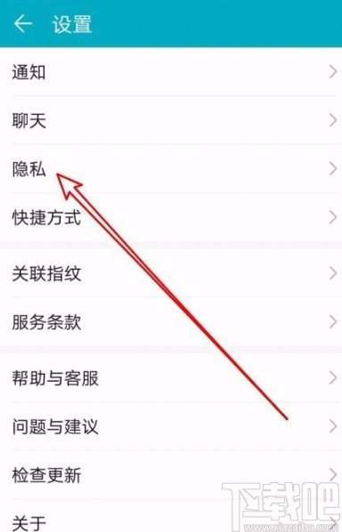 4.随后就会跳转到设置页面,我们在页面上找到“隐私”选项,点击该选项,手机就会进入到隐私页面。