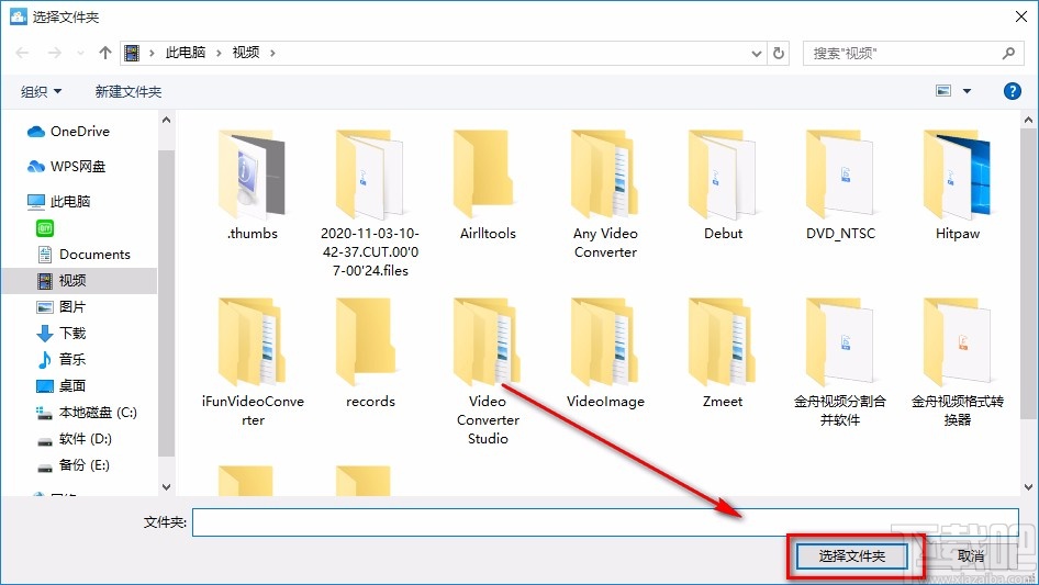 9.在文件保存路径选择页面中,我们将文件的保存位置选中,再点击页面右下角的“选择文件夹”按钮就可以了。