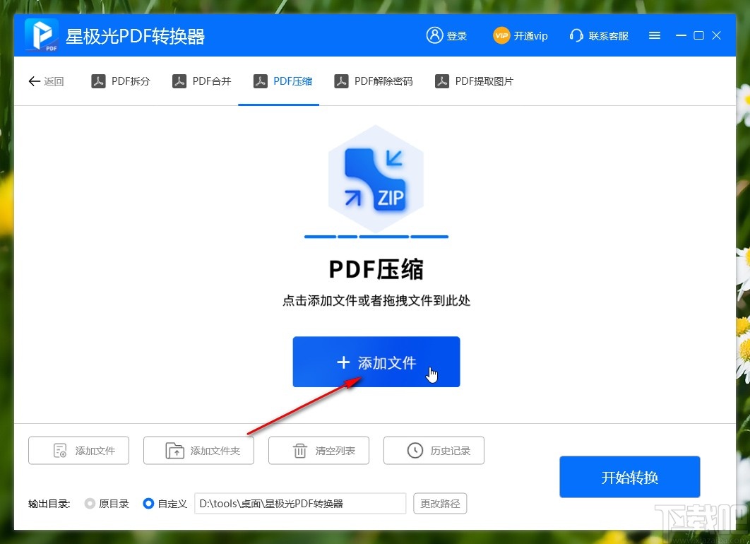 2.进入到这个PDF压缩界面之后,在界面中可以看到有添加文件这个按钮,点击之后可以准备添加想要压缩的文件。