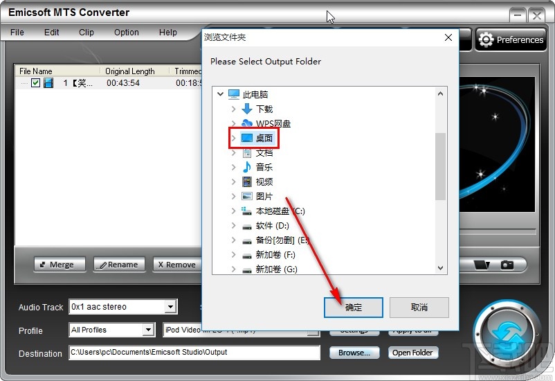 7.点击这个Browse按钮之后,打开一个选择文件的界面,点击其中的输出文件位置之后点击确定按钮即可选取剪切视频的输出保存位置。