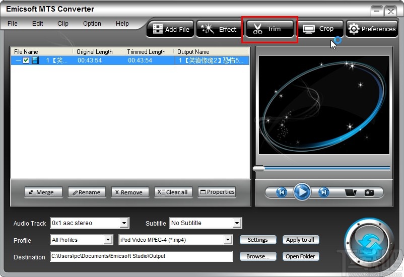 以上就是小编今天跟大家分享的使用Emicsoft MTS Converter这款软件的时候剪切视频文件的具体操作方法,感兴趣的朋友不妨一起来看看这篇方法教程,希望这篇教程能帮到大家。
