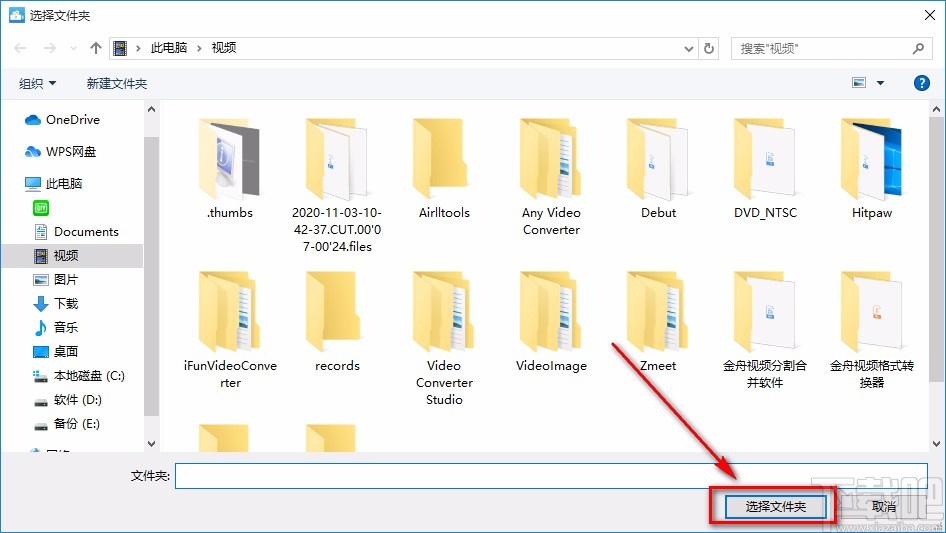 8.在文件保存路径选择页面中,我们将文件的保存位置选中后,再点击界面右下角的“选择文件夹”按钮就可以了。