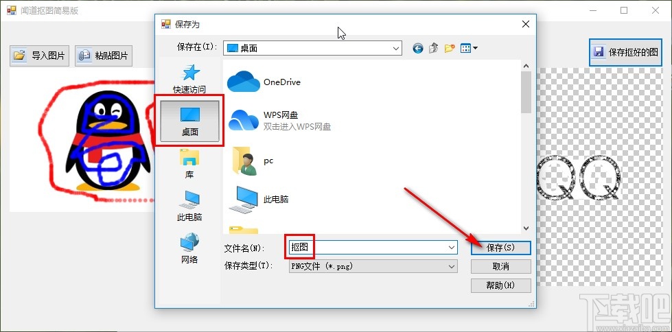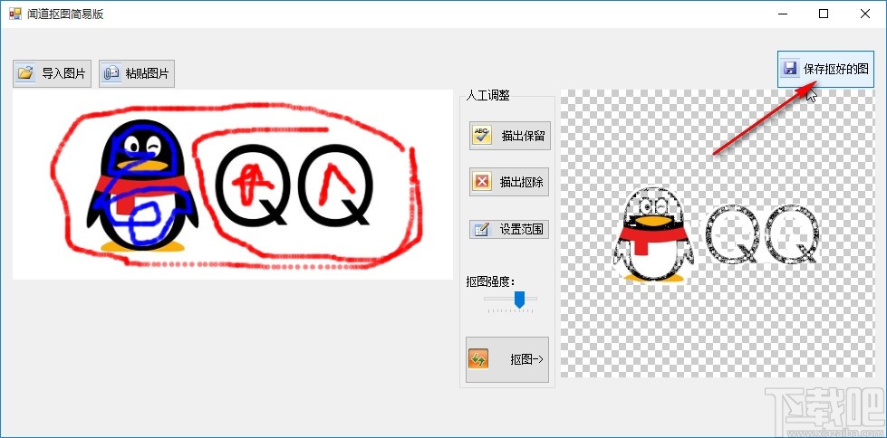 5.抠图完成之后,想要保存抠图的图片的话点击界面右上角的“保存抠好的图”这个按钮准备保存抠好的图片。