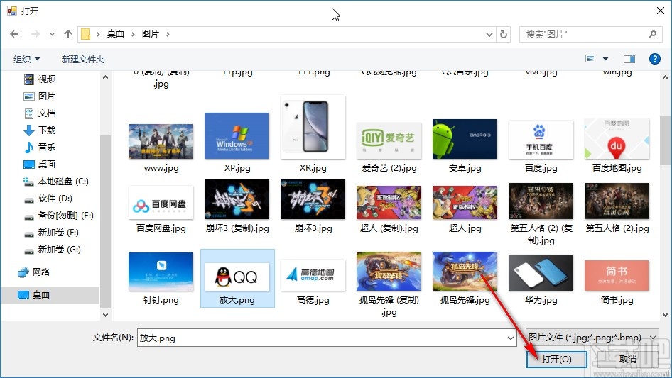 2.点击这个导入图片之后,接下来打开选择图片的界面,我们在界面中选中目标图片文件之后点击右下角的打开按钮。
