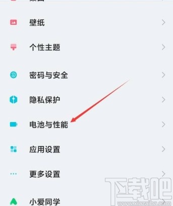 2.进入到这个应用的设置界面之后,在界面中找到电池与性能这个设置选项,找到之后点击它进入到设置界面中。