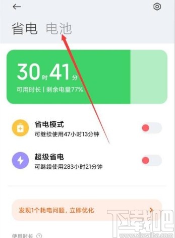 3.下一步在这个设置界面中我们找到上方的电池设置选项,点击之后切换到电池设置界面,如下图中所示。