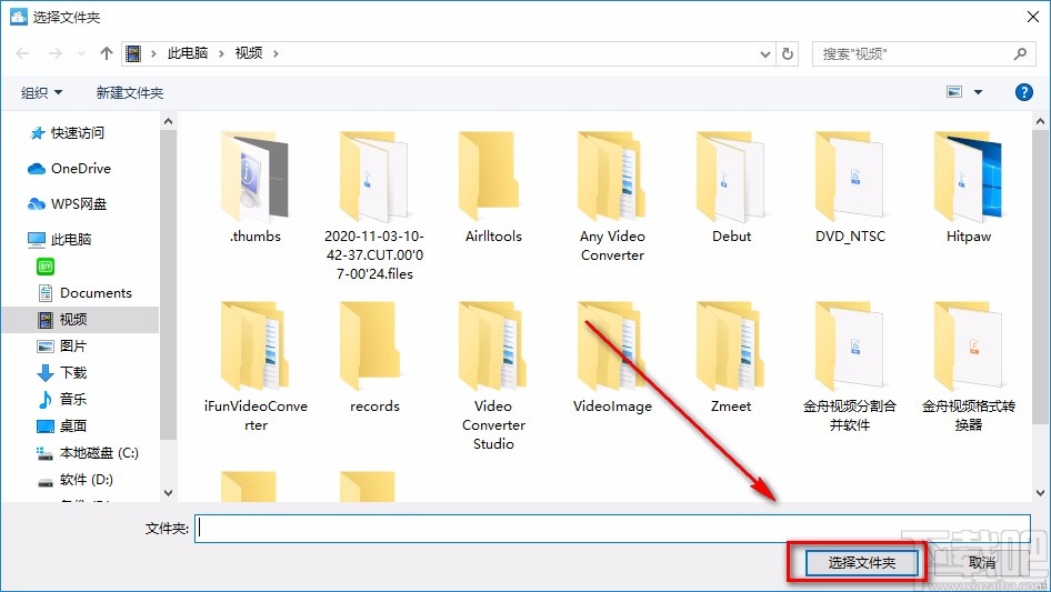 5.在文件保存路径选择页面中,我们将文件的保存位置选中后,再点击页面右下角的“选择文件夹”按钮就可以了。