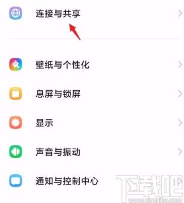 2.接着在设置页面中,我们在页面上找到“连接与共享”选项,点击该选项再进行下一步操作。