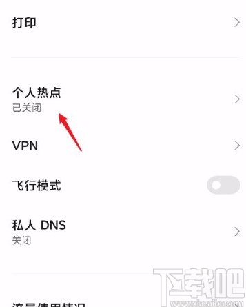 3.接下来我们就会看到下图所示的界面,在界面上找到“个人热点”选项,点击它进入到个人热点页面。