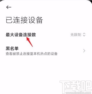 5.紧接着我们在页面上找到“最大设备连接数”选项,点击该选项,界面右侧就会出现一个窗口。