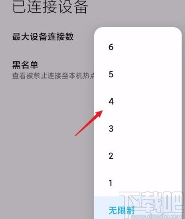 6.最后在窗口中可以看到很多的数字选项,我们根据自己的需要选择最大设备连接数就可以了。