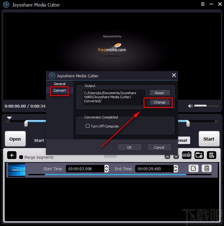 6.紧接着在界面上就会出现一个对话框,我们在对话框左侧点击“Convert”选项,并点击对话框右侧的“Change”按钮。