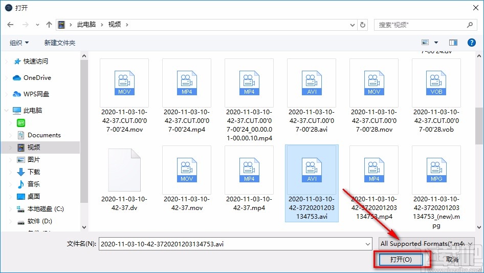 3.在文件添加页面中,我们选中需要进行剪切操作的视频,再点击页面右下角的“打开”按钮就可以了。