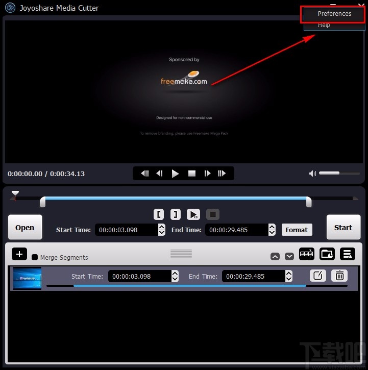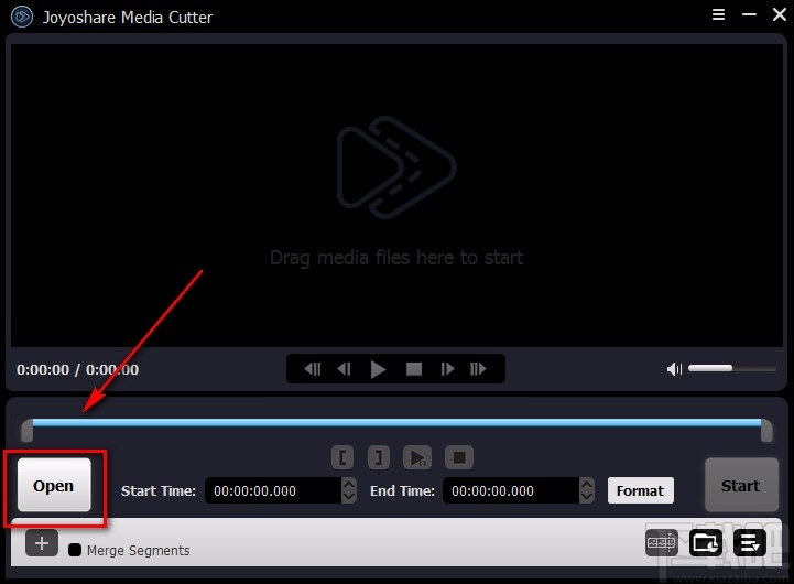 2.接着在视频剪切页面中,我们在页面左下方找到“Open”按钮,点击该按钮就可以进入到文件添加页面。