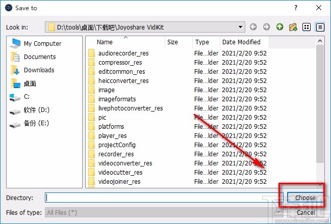 7.接下来界面上就会出现一个文件保存路径选择页面,我们在页面中选择好文件的保存位置,再点击页面右下角的“Choose”按钮就可以了。