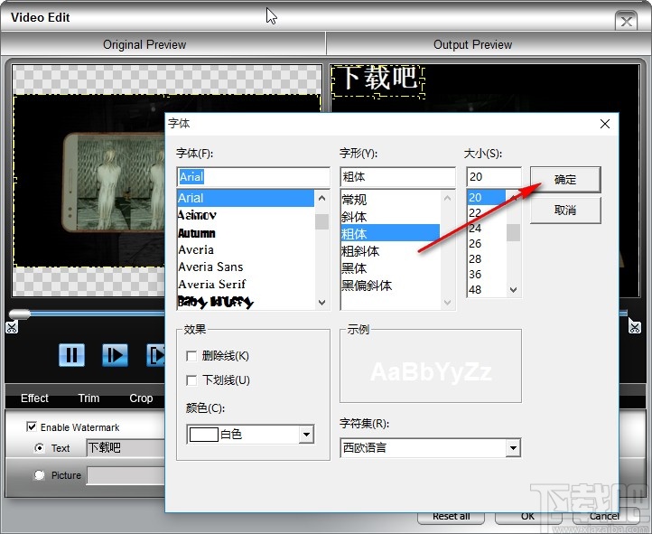 6.点击这个T字图标之后会出现一个设置字体的界面,我们根据自己的需求来选择好字体的一些样式参数,然后点击右上角的确定按钮即可。