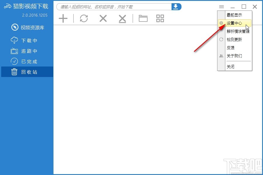 2.打开软件的这个操作菜单之后,我们在出现的菜单列表中,找到设置中心这个选项之后,点击进入到设置界面。