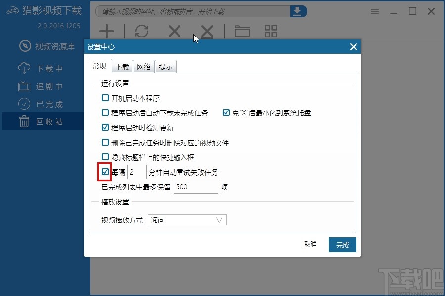 使用上述教程中的操作方法我们就可以在猎影视频这款软件中设置重试下载失败的任务了,还不知道要如何操作的朋友赶紧试一试这个方法吧,希望这篇教程能帮到大家。