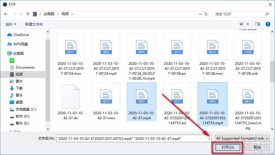 3.接着在文件添加页面中,我们按住Ctrl键将需要合并的视频选中,再点击页面右下角的“打开”按钮即可将视频添加到软件中。