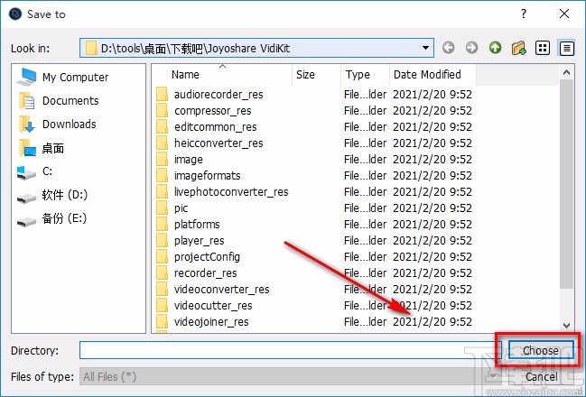 7.之后界面上就会出现一个文件保存路径选择页面,我们在页面中选择好文件的保存位置后,再点击页面右下角的“Choose”按钮。