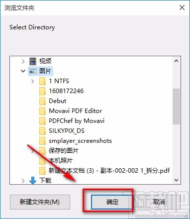 7.在文件保存路径选择页面中,我们将文件的输出目录选中后,再点击页面底部的“确定”按钮就可以了。