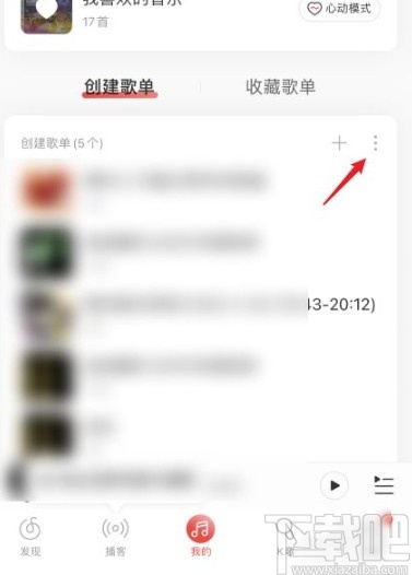 2.进入到个人中心界面之后,我们在界面中可以看到有歌单模块,如下图中所示,需要点击界面中的三点菜单按钮,如下图中所示。