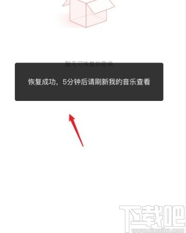 5.点击恢复之后等待恢复完成界面中就会显示恢复成功的提示,如下图中所示,这样就表示歌单已经成功恢复了。