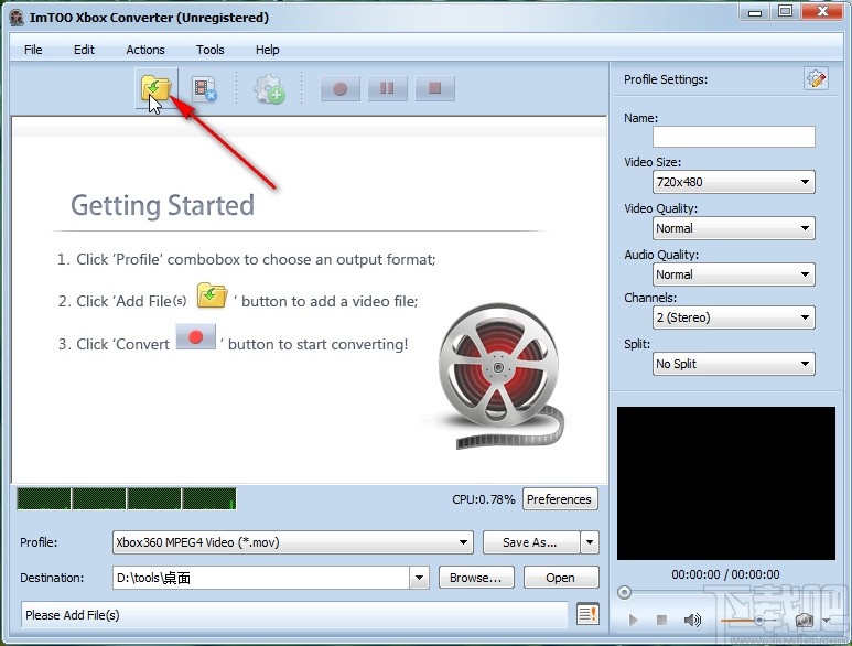 1.首先第一步我们需要在打开软件之后,点击软件上方的文件夹图标,点击这个图标之后可以准备选择想要添加的文件。